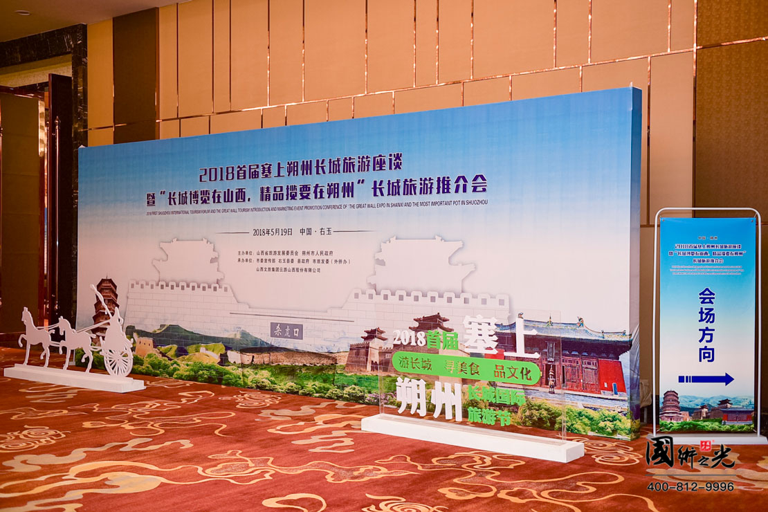 “長(zhǎng)城博覽在山西,精品攬要在朔州”長(zhǎng)城旅游推介會(huì)場(chǎng)外氛圍布置展示